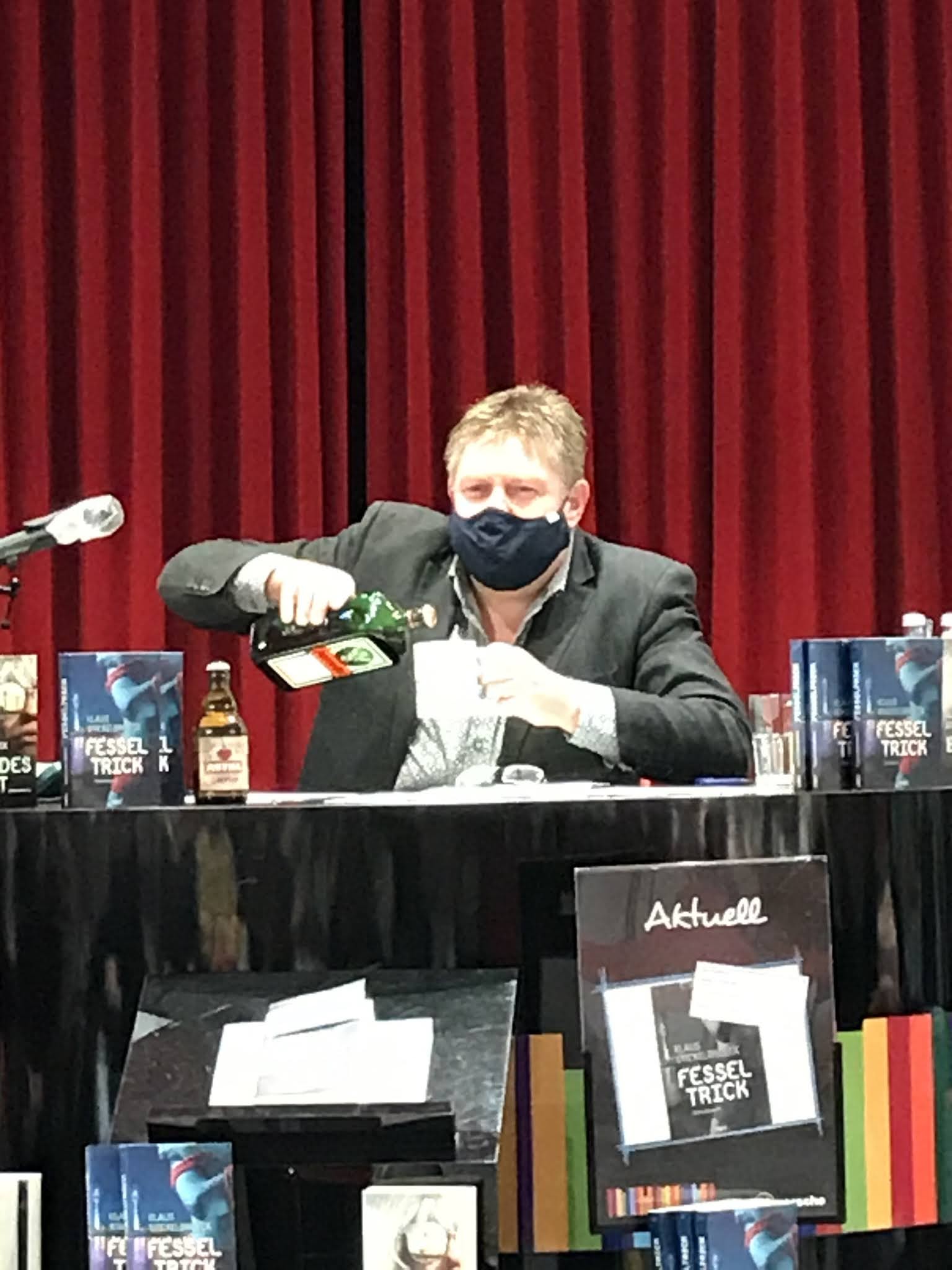 Während der eigentlichen Lesung habe ich zwar auch Bilder gemacht, aber der Scheinwerfer machte das Gesicht so blaß und ich habe ja nur mit meinem Handy fotografiert.