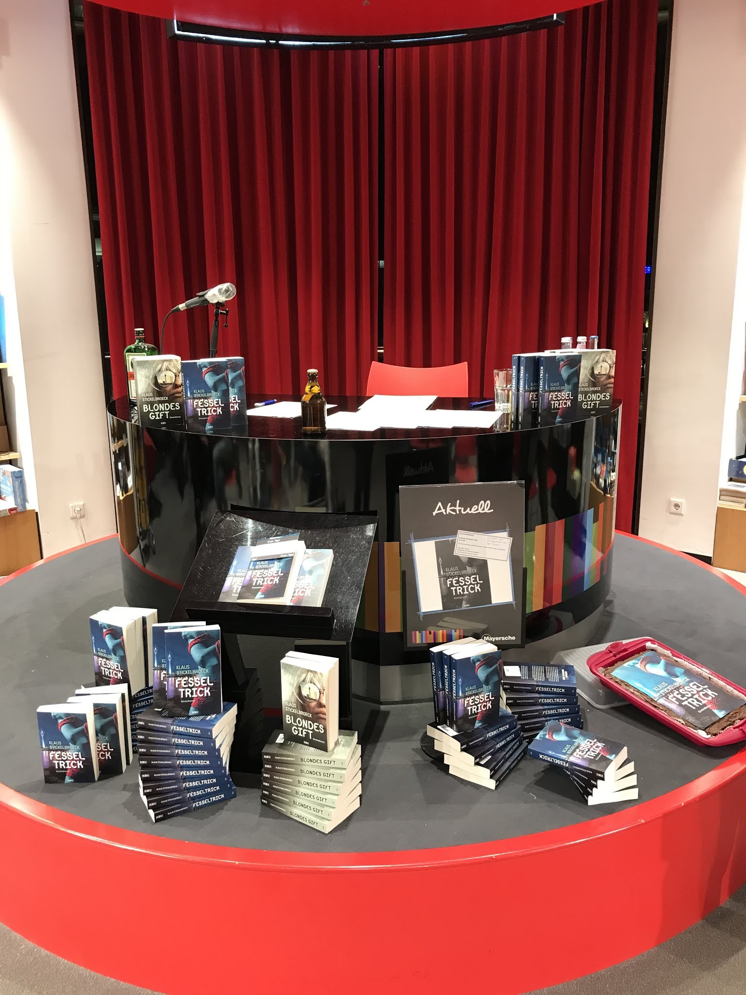 Letzte Vorbereitungen, bevor Klaus Stickelbroeck in seiner besonderen Art Auszüge aus dem Buch vorliest.