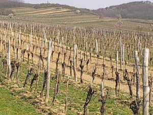 Noch sieht alles sehr kahl aus. Dafür ist viel Gegend zu sehen und man braucht schon etwas Phantasie, dass in ein paar Monaten hier die Trauben für den leckeren Wein gelesen werden können.