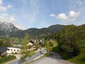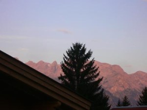 Blick vom Balkon auf den Hochkönig. Seit Jahren sind wir es gewohnt einen Blick auf den Berg zu werfen und haben das immer als Hinweis auf das Wetter genommen. Früh am Morgen leuchtete der Berg von der Morgensonne und wir wußten das wird ein toller Tag.