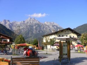 Der Dorfplatz mit Blick auf die Eiskögel