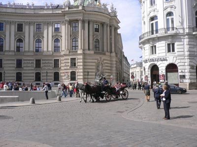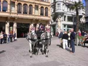 Fiaker, berühmt und schön anzusehen, fuhren dort reichlich herum. Allerdings sind die Fahrten verflixt teuer.