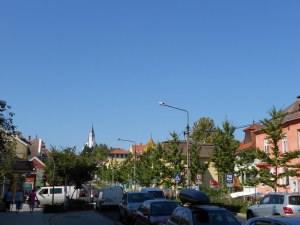 einer der vielen Plätze und Straßen von Heviz, zu beachten ist dieser tolle blaue Himmel