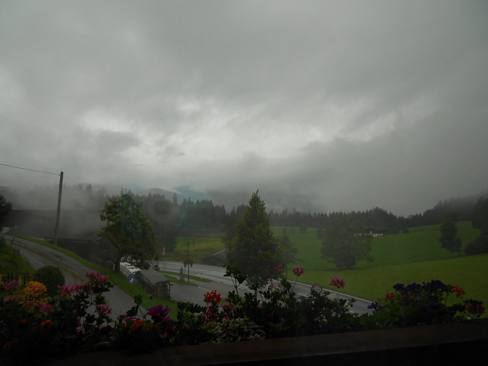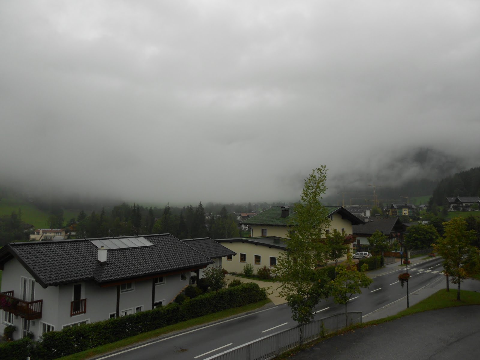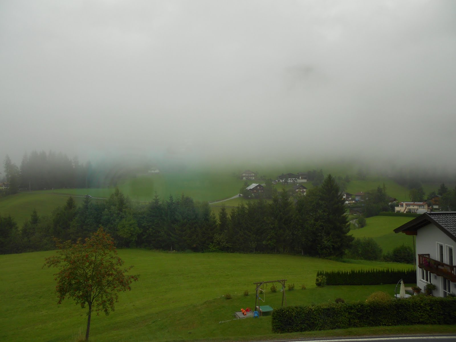 Der andere Blick vom Balkon – die Ecke rum – hier konnten wir in den Ort sehen und hatten auch die Sicht auf die Bischlinghöhe, wo die Paragleiter und Drachenflieger gestartet sind.