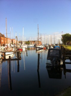 Die Fahrt war sehr angenehm, ich hatte reichlich Zeit zum Lesen oder die anderen Reisenden zu studieren. Das eine oder andere Gespräch wurde auch geführt. Bis Lübeck war die Fahrt nicht besonders aufregend, nachdem wir die Stadt hinter uns gelassen hatten, besaß ich nicht mehr die Muse in meinem Buch zu lesen. Ich näherte mich meinem Ziel und konnte mich von dem Anblick der Gegend, durch die wir nun fuhren nicht mehr lösen. Obwohl in dem Waggon keine Fenster geöffnet werden konnten, verbreitete sich der Geruch der Rapsfelder. Diese Felder erfreuten nicht nur mich, auch andere Damen, die mit mir im Waggon saßen, der inzwischen sehr leer war, waren begeistert. Das Gelb leuchtete so wunderschön, die Blüten standen in voller Pracht. Immer wieder konnten wir auch die Ostsee erblicken. Einer Dame, die zum ersten Mal nach Fehmarn fuhr, konnte ich so viel zeigen und erklären. Schließlich kam die Brücke in Sicht, die im Volksmund gerne der \“Kleiderbügel\“ genannt wird. Langsam fuhr der Zug darüber und ich konnte mich an dem Anblick meiner Insel erfreuen. Jedes Mal bin ich begeistert. Es sieht einfach toll aus, wenn die vielen Segelboote auf dem Meer sind und man schon viel von der Insel erblicken kann. Diesmal waren es zusätzlich die vielen gelben Felder, die mich zusätzlich begeisterten. Und ich hatte es geschafft, ich war nach sechs Stunden endlich da!