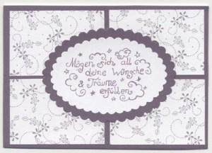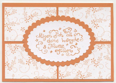 Ich wollte endlich mal etwas anderes sehen, als immer nur Schnee. Mal wieder etwas Farbe in den Alltag bringen. So wurde mein Penny Black Stempel hervorgekramt und endlich kam der große Schnörkelstempel so richtig zum Einsatz, den ich im vergangenen Jahr in Hagen erstanden habe: