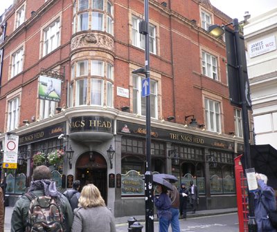 Natürlich legten wir den Weg zu Fuß zurück, so konnten wir doch wesentlich mehr sehen und die U-Bahnen waren jetzt mit Sicherheit auch wieder proppevoll und die Busse standen mehr, als sie fuhren. Außerdem konnte ich dann mal wieder einige Pubs fotografieren. Ich finde das so klasse, da stehen ganz normale Häuser und auf der Ecke ein liebevoll zurecht gemachtes Haus, in dem sich ein Pub befindet. Die Schilder begeistern mich auch immer wieder. Aber wenn ich an jeder Ecke stehen bleibe und gucke und fotografiere, komme ich nie ans Ziel, also habe ich gar nicht so viele der Pubs fotografiert.