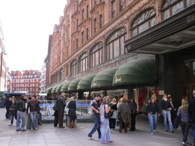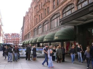 Einer der vielen Eingänge von Harrods, nach Auskunft eines Sicherheitsbeamten haben sie 11 Ein/Ausgänge, wir wollten aber zu dem, der uns zum Underground führte: