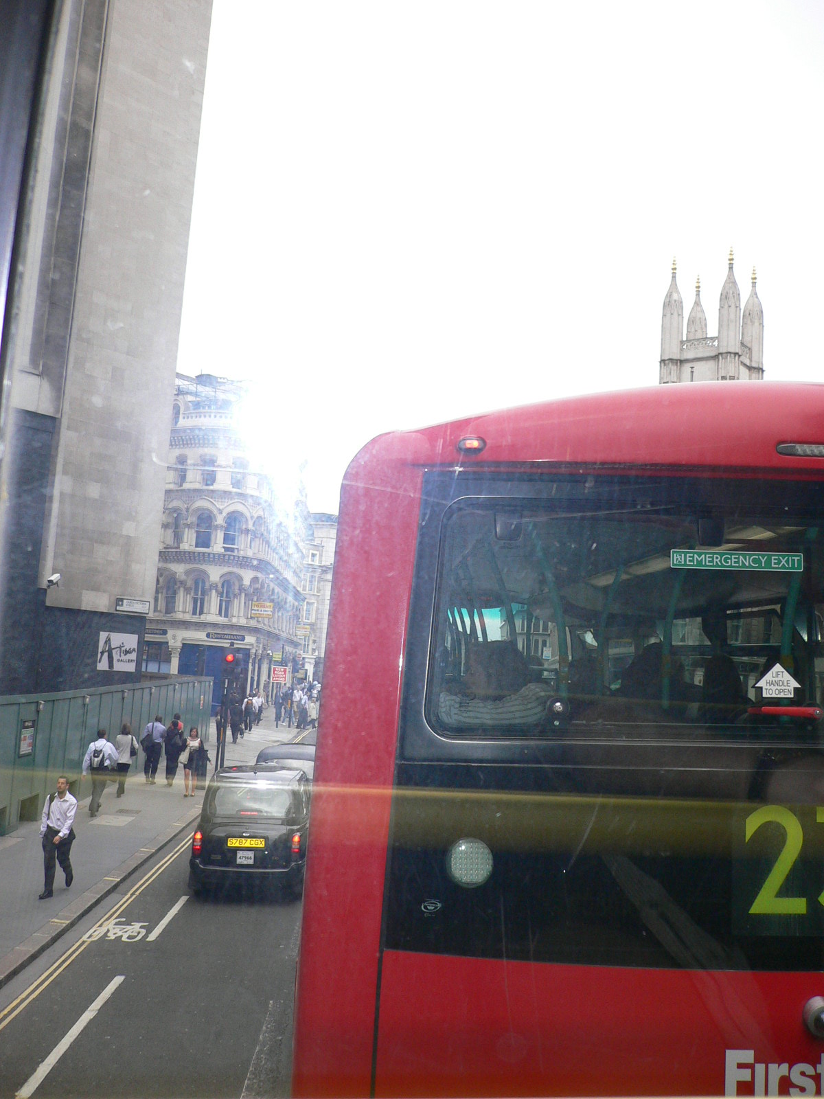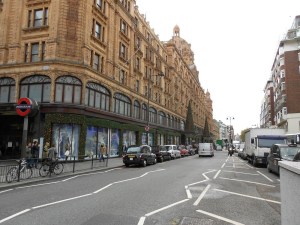 Mit dem Bus fuhren wir eine ganze Weile und ich muss zugeben, die Strecke hat mich etwas verwirrt. Aber man braucht sich ja keine Sorgen zu machen, wenn man falsch fährt, einfach aussteigen und einen anderen Weg wählen. Das Netz der öffentlichen Verkehrsmittel in London finde ich sehr gut ausgebaut. Aber laut Plan sollte dieser Bus in Knightsbridge halten und wir wollten ihm auch die Chance geben, bevor wir ihn vorzeitig verlassen. Ich hatte einen guten Sitzplatz, vorne beim Fahrer und konnte so wirklich alles bestens sehen. Mir kommt das Busfahren immer wie eine kleine Stadtrundfahrt vor, immer sehe ich etwas anderes. Aber wie erwähnt, die Strecke hat mich schon verwirrt. Kennt man sich doch in London bestens aus, nachdem das Spiel „Scotland Yard“ häufig mit den Kindern gespielt wurde. Kathrin meinte, mit diesem Bus hätten wir auf jeden Fall jeden Verfolger abgehängt. Aber wir sind dann doch tatsächlich an einer Station in der Nähe von Harrods ausgestiegen, denn der Bus steckte nun im Stau fest und zu Fuß waren wir dann doch schneller.