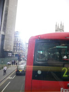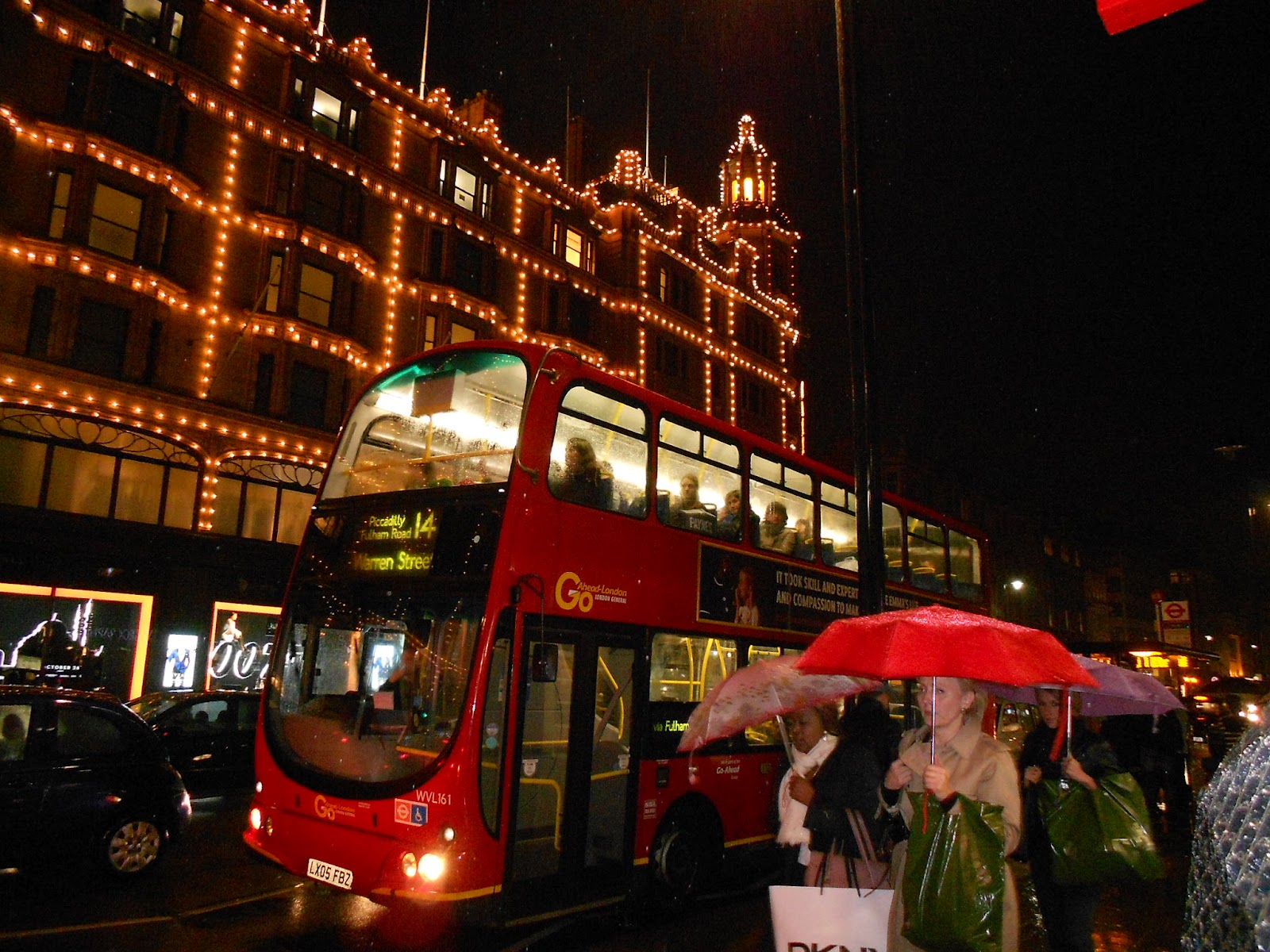 Zufällig kamen wir nun an einer Bushaltestelle vorbei, vor der ein Bus Richtung Harrods fuhr. Wir wollten dort ja auch hin, obwohl ich nicht so begeistert war, denn im Dezember vorigen Jahres fand ich es sehr nervig, es war mir zu voll dort. Aber ich konnte ja immer noch draußen auf die anderen warten, wenn es mir zu viel würde.
