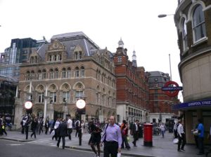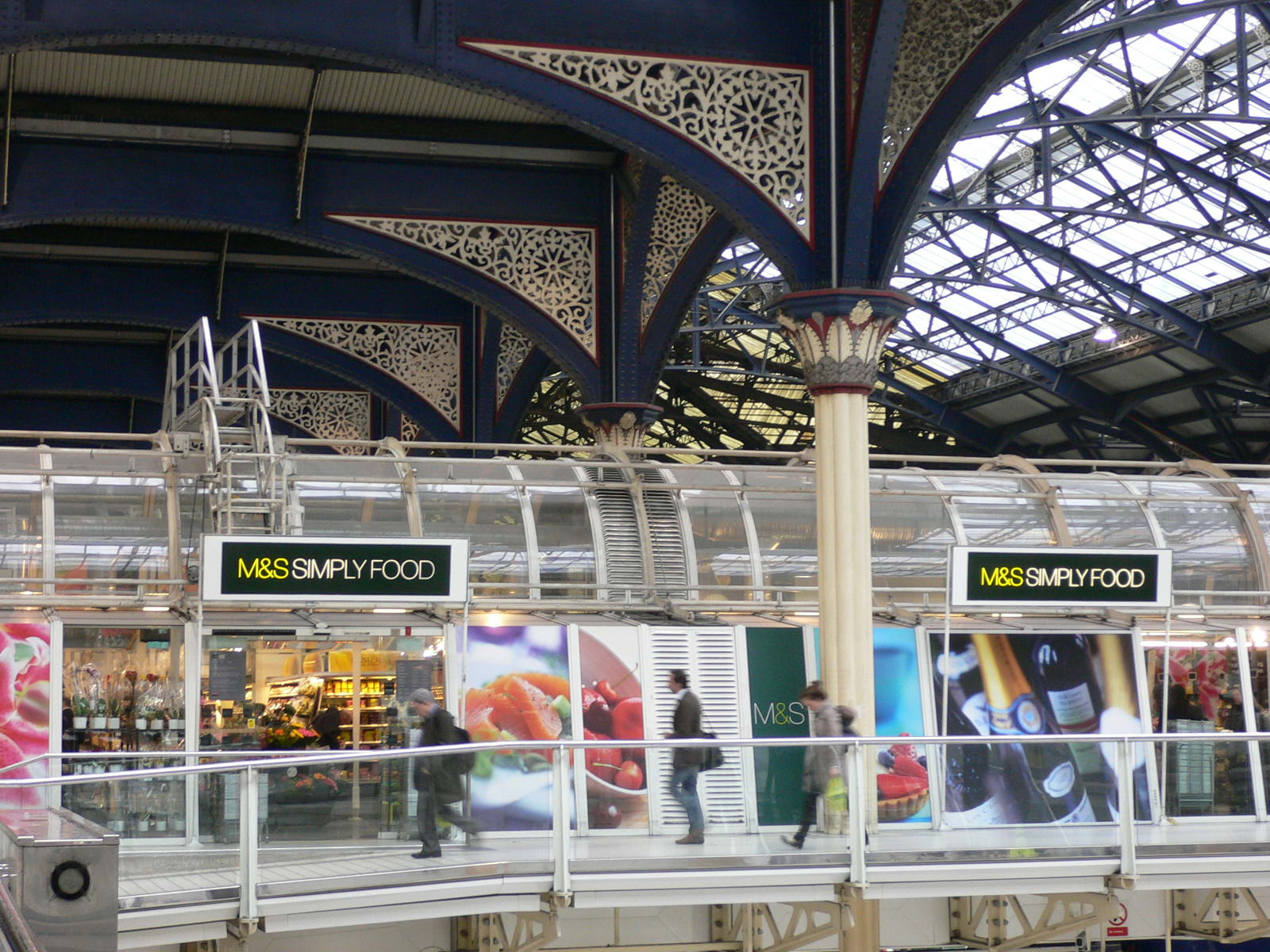 Die Zugfahrt kam uns gar nicht so lang vor, da es wirklich viel zu sehen gab. Als wir in der Liverpool Station ankamen, waren wir direkt mittendrin im Londoner Leben und der morgendlichen Rushhour, denn es war nach Londoner Zeit ja erst 8.00 Uhr. Auf dem Bahnsteig vor uns ging eine Frau, die alles Mögliche fotografierte und ich habe natürlich sofort geguckt, was sie denn so begeisterte. Leider kann man das Interessante dieses Bahnhofs gar nicht richtig mit dem Bild festhalten, aber ich habe es auch mal versucht.