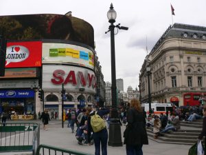 So, und nun, ach der nächste Zugang zum Underground ist ja nie weit und ab ging es auch nach unten. Die Line bis Piccadilly Circus wurde von uns erwählt. Dieser Platz hat es mir bereits Anfang der 80er Jahre angetan und auch jetzt finde ich ihn immer noch toll. Wer meint, London wäre flach und eben, der täuscht sich, vom Piccadilly Circus kann man „nach unten“ schauen und sieht den berühmten Nelson und weiter dahinter den Big Ben.