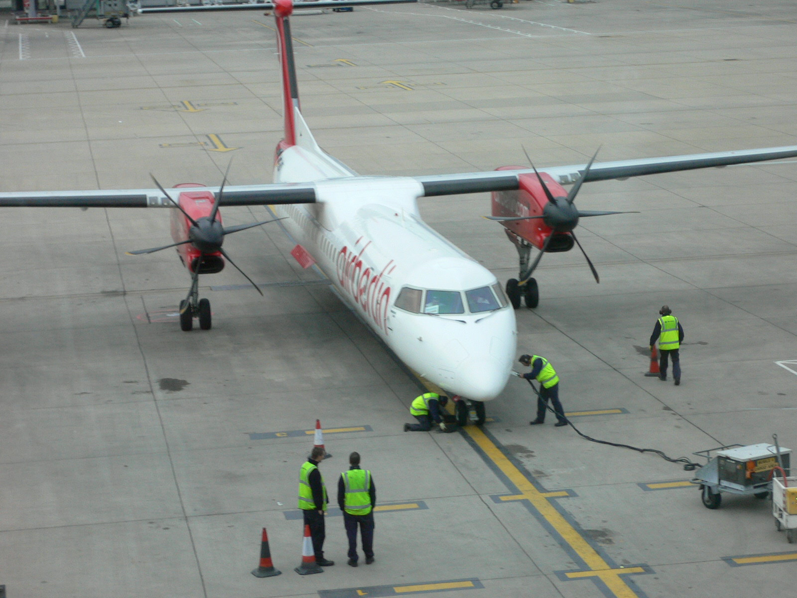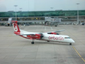 Da wir ja nicht zu früh da waren, ging alles andere auch sehr schnell und auf einmal saßen wir im Flugzeug von Air Berlin. Der Service, der uns in diesem Jahr geboten wurde, war sehr gut, man merkt schon, dass dies die alte Mannschaft von LTU war. Tja, wären wir mit dem Auto unterwegs gewesen, hätte ich jetzt gesagt, ui, da waren reichlich Schlaglöcher unterwegs. Es war ein sehr unruhiger Flug, aber er dauerte ja auch nur 55 Minuten und schon landeten wir in London Stansted.
