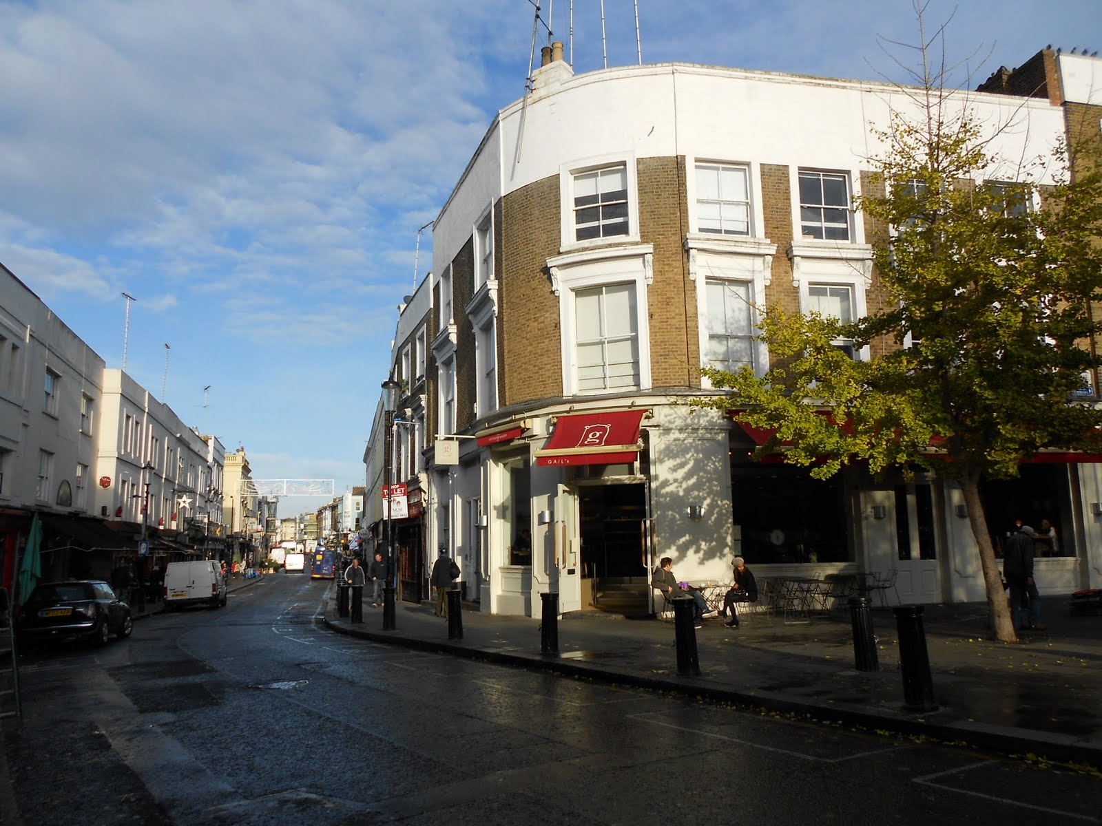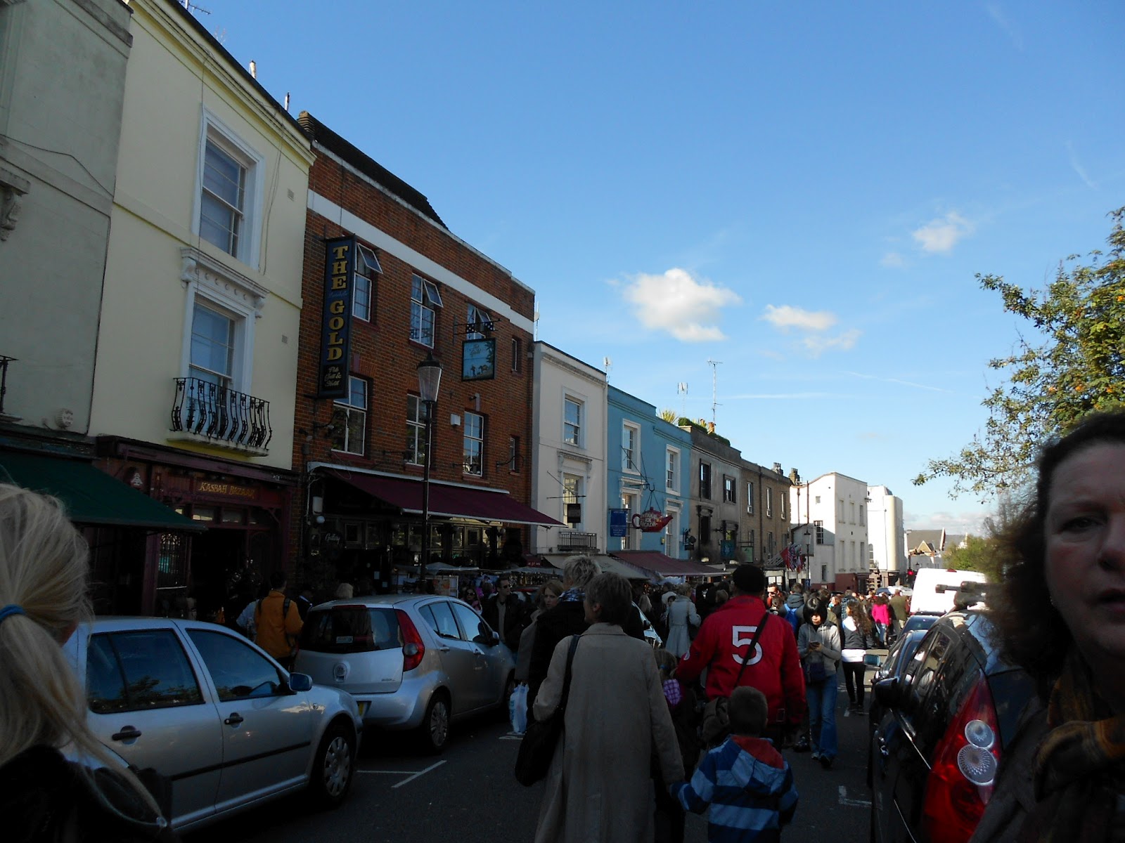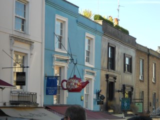 In Notting Hill angekommen, sind wir dann direkt zur Portobello Road gegangen. Meine Begeisterung für die schönen Häuser war auch sofort wieder da. Man kann es nicht glauben, London ist eine Großstadt, aber man findet immer wieder diese hübschen kleinen Häuser und es wirkt richtig gemütlich auf einem. Aber wir wollten nun als erstes frühstücken und da wir nun mal in London waren, sollte es auch ein englisches sein. Wie es oft so ist, man ist ungeduldig und möchte sofort das richtige Lokal finden und nimmt dann aber trotzdem das zweite, das man sieht. Das dritte oder vierte wäre vielleicht noch typischer gewesen. Aber unvoreingenommen, wie wir waren, haben wir einen Bäcker mit Cafe gewählt und es war auch gut so. Es war eine Bäckerei, so richtig gemütlich und alt und es schmeckte gut.