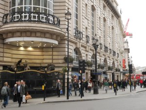 So, nun war aber mal wieder eine Pause angesagt. Kaffee zum Aufmuntern – da ist Starbucks immer eine gute Adresse. In den gemütlichen Sesseln hingen wir dann aber auch wie ein Schluck Wasser in der Kurve und diese sollten wir mal besser wieder kriegen, denn wir wollten ja schließlich noch etwas sehen. Also weiter auf der Regent Street und dann abbiegen in die Oxford Street. Mal in dieses Geschäft, mal in das andere gucken oder auch kaufen. Jetzt merkte man aber auch, es war Freitagnachmittag und die Straße und Bürgersteige wurden immer voller. Und wir peilten nun unser letztes Ziel für den Tag an: Covent Garden.