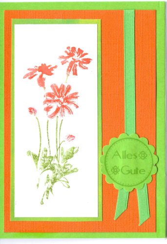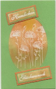 Beim Stöbern im WWW habe ich eine Karte gesehen, die mir sehr gut gefiel und die ich gerne nacharbeiten wollte. Als ich farblich passendes Papier zusammenstellte, hatte ich auch direkt 3 Kombinationen zur Hand. Ich mag es ja doch eher schlicht und die Karten wirken so auch sehr edel: